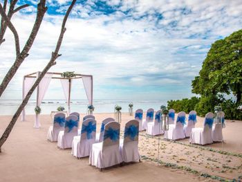 Самые большие вопросы по пляжу. Он и в прилив не самый комфортный, а в отлив его вообще нет. У отеля Мерусака сильно лучше пляж, находится в 10 минутах ходьбы по береговой линии от пляжа этого Мариотта.