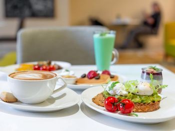 Отель старый, но номера обновлены. Полотенца новейшие. Постель удобная. Одни тапки на номер, халаты отсутствовали. Очень удобные кровати и подушки. Чай и кофе (растворимый). Завтраки разнообразные и хорошие. Кофе в термосах не съедобный, но есть возможность заказать хороший капучино. Брали ужины (полупансион), один вечер был в кафе - как в студенческой столовке (куриная ножка и рис) все три блюда на семью были невкусными, другой - в ресторане, где завтраки - там нормально, шведский стол.