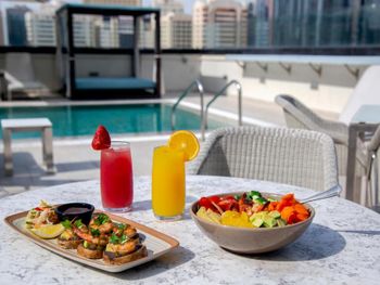 Приехали около 11, нас сразу заселили. Номер нормальный, просторный, есть утюг, чайный уголок, сейф. Очень хороший завтрак за эту цену. С нас взяли за двоих за 5 завтраков 500 дирхам. В дубаи в похожем отеле завтрак стоил дороже и был менее разнообразным. Сходили один раз на обед за 75 дирхам, тоже шведский стол, больше не пошли, не особо понравился. Бассейн нормальный. Да, он не такой большой, но он подогреваемый, все комфортно размещались, даже почти при полной занятости лежаков. Лежаки всегда были свободны. Полотенца выдают около бассейна. Бар нормальный, приятно вечером выпить, цены на алкоголь не высокие. Постель удобная. Расположение хорошее, до пляжа минут 10. Соотношение цены-качества хорошее