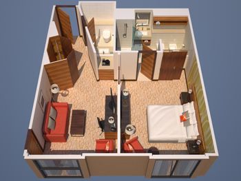 Представитель отеля предложила помочь нам перенести вещи в номер с 2 кроватями и сдвинуть их. Если на следующий день освободился бы номер с 1 кроватью - мы могли бы в него переехать.