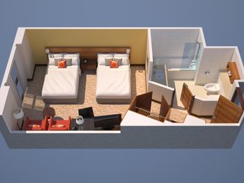Учитывая факт полной брони двухместных номеров с 1 кроватью, администрация предлагала нам только номера с 2 отдельными кроватями (хотя изначально был забронирован номер с одной кроватью).