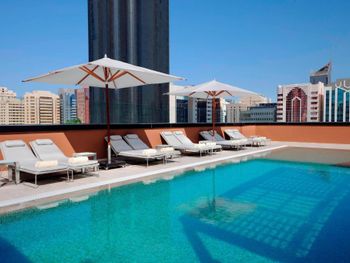 Удачное расположение, не очень далеко от набережной. У входа в любое время суток найдётся такси для поездок по достопримечательностям. Очень доброжелательный персонал, даже смогли сделать нам ранний чек-ин. Из-за раннего заезда нам достался номер с 2-мя отдельными кроватями вместо одной дабл. Но каждая из них была просто огромная!! Номер на 4 этаже имел с панорамное окно на красивую террасу во внутреннем дворе. Зона бассейна также очень уютная, с удобными лежаками, можно прекрасно провести время с коктейлем (в том числе алкогольным), цены в баре нормальные для Абу-Даби. Шампуни-гели в ванной из серии Nirvae, я очень люблю их запах. Завтраки не попробовали, т.к. ранним утром уезжали в аэропорт. Обязательно остановимся здесь повторно при следующем визите в Абу-Даби.