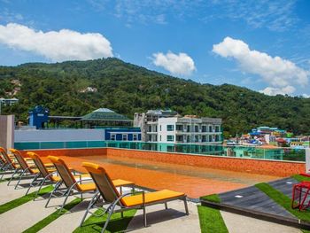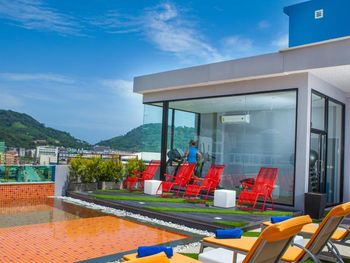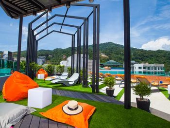 Красивый вид с крыши, где располагается стильный бассейн! Номера чистые. Со стороны отель выглядит очень оригинально. Близко к центру Патонга. Рядом куча кафе и огромный рынок с разнообразными фруктами и морепродуктами!