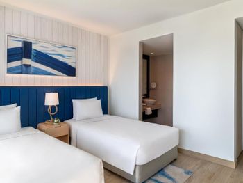 Отель с чистой территорией и хорошим пляжем, на который доставляют отельные багги. Номер хороший. НО возникла проблема с кроватями. Бронировали номер на 4-х , двое взрослых и двое детей. Рассчитывали, что принесут дополнительную кровать для ребёнка. Но, к сожалению, бесплатно ее предоставить отказались. А доп доплата 125 АЕD в сутки. Пришлось взять номер с 2-мя односпальными кроватями, чтобы не доплачивать. Повезло, что они оказались достаточно просторными.