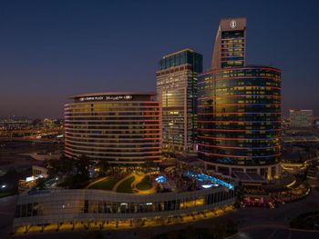 Останавливалась здесь 9 лет назад и ничуть не разочаровалась-персонал,услуги,комфорт -все очень хорошо.До аэропорта совсем близко(30 дирхам),рядом торговый МОЛЛ "Фестиваль",набережная с водным шоу каждые пол-часа(на сей раз было странное).Расселили в "Интерконтинентале"(одна цепочка).Ужин в ресторане(шведский стол)-выбор есть,конечно больше напоминает столовую,но никакой толчеи.Услужливый персонал!
