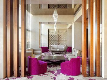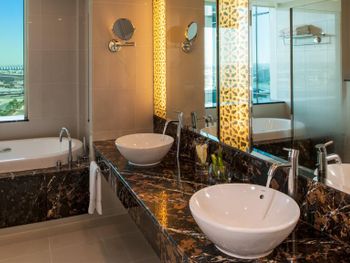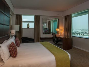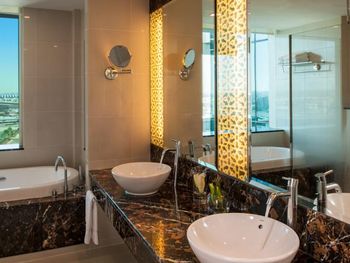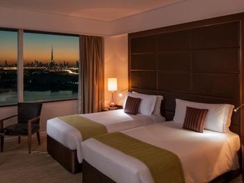 Расположение отеля, в 10 минутах от аэропорта. Рядом большой торговый центр и Икея. Симпатичная сотрудница на ресепшн по имени Каел за адекватную цену сделала нам ранний заезд, поздний выезд и апгрейд со стандартного номера до двухкомнатного люкса с видом на озеро! Брали завтрак и ужин и не пожалели.Бассейн лучше в нашем отеле чем в Интерконтиненале. Понравилась сауна и хамам. В аэропорт доехали на такси за 20 дирхамов. Вишенка на торте были вечерние фонтаны напротив ТЦ. Благодарю всех сотрудников отеля за теплый прием и комфортное пребывание.