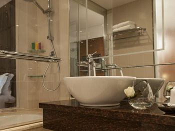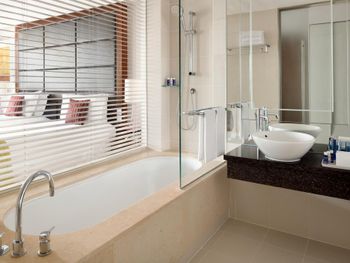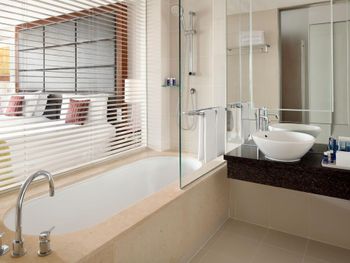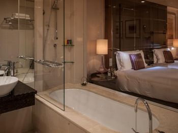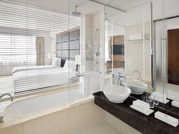 Очень комфортный номер. Везде было прохладно. Отличный паб. Подземный переход в торговый центр. Можно пользоваться бассейном Intercontinental.