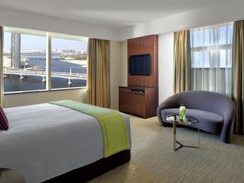 Просторные номера отеля Crowne Plaza обставлены дизайнерской мебелью и оформлены роскошными тканями. Во всех номерах есть гостиный уголок и рабочий стол.