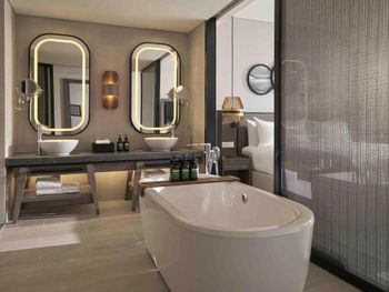 В номерах Crowne Plaza Phu Quoc Starbay by IHG установлен кондиционер, сейф и телевизор с плоским экраном. Среди прочих удобств — письменный стол, кофемашина, холодильник и мини-бар, а также собственная ванная комната с душем. В собственной ванной комнате есть бесплатные туалетно-косметические принадлежности. Гостям Crowne Plaza Phu Quoc Starbay by IHG предоставляются постельное белье и полотенца.