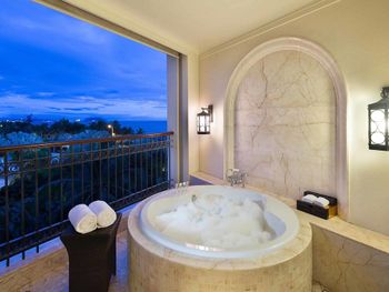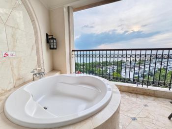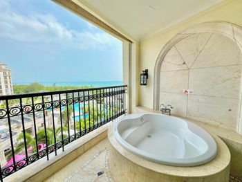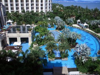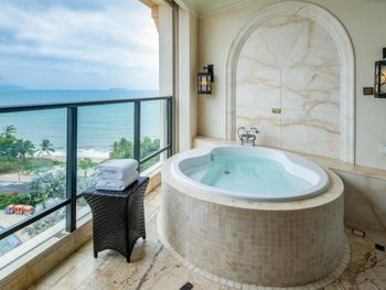 Красивый номер с ванной на балконе. При заселении предложили повышение категории (более высокий этаж и лучший вид). Персонал участливо помогает решать вопросы. Расположение немного вдали от суеты. Недалеко до достопримечательностей: Центр буддизма Наньшань и Край света. Можно доехать на прямом автобусе (остановка рядом). До Саньи тоже недолго ехать на автобусе. До аэропорта 10 минут, но шум самолётов не мешает. В отеле интересные ужины (барбекю). Для предлагаемого набора блюд (мясо, морепродукты, устрицы и пиво-вино) совсем недорого. Завтраки очень понравились (фрукты великолепны, лапша, вкусный кофе, завтраки предлагают допоздна). Бассейн в жаркий сезон работал до 22-30. Пляж рядом без лежаков, ничего не нарушает красоты природы. Море шикарное.