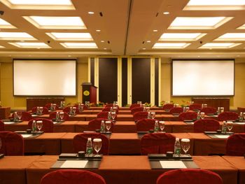 Guests may relax in the luxurious 2000-square-metre lobby, take a dip in the swimming pool or play a game of tennis with travel mates. Meeting and banquet facilities are provided upon request.