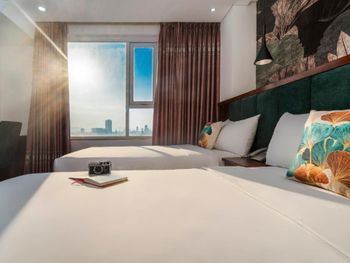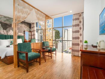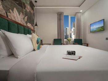 Вежливый персонал, светлый, просторный номер с видом на город и горы. Чисто, есть все необходимое для проживания. Уборка номеров и смена белья по требованию. Хорошая шумоизоляция, в отличие от многих других отелей, соседей не слышно. Шикарная крыша с чистейшим бассейном и тренажерами. Я бы сказала, это самый комфортный из 4х отелей Дананга, где мы останавливались.