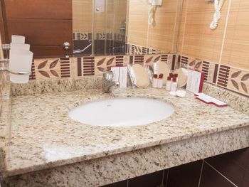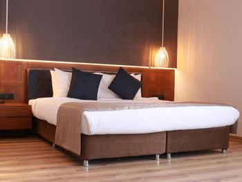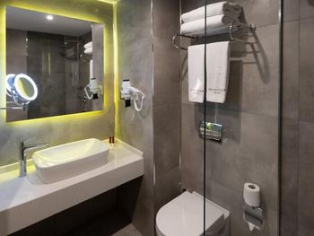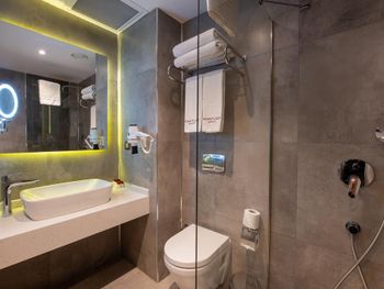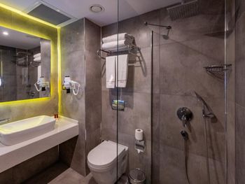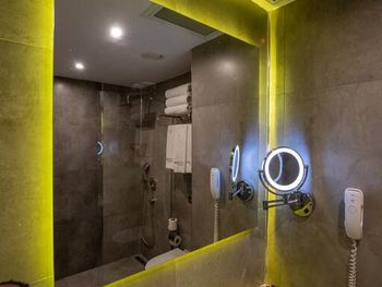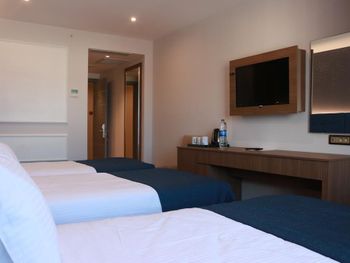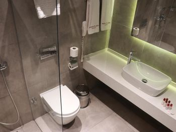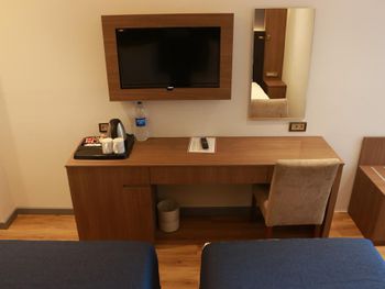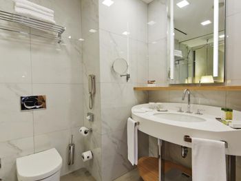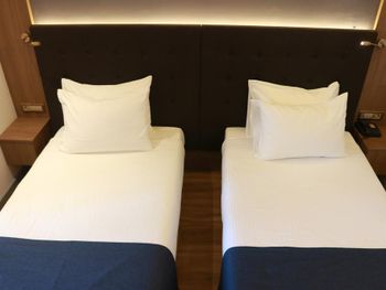 Почти час пытались разместиться в номерах: все комнаты были меньше заявленной, очень узкие, не соответствовавшие фотографиям. В конце концов чтобы не искать ночью другой отель согласились на то, что есть. В отеле не топят - очень холодно, слышимость просто 100%: слышно каждое слово соседей. Отель потрепанный, «уставший». Полотенцесушитель в ванной висит прямо над унитазом. Одно неловкое движение и оба полотенца падают прямо в туалет. Очень неудобные матрасы, в 4-звездочном отеле поролоновые матрасы недопустимы. Спать было невозможно настолько, что пришлось снять номер в Grand Hyatt и спать ходили туда. На чек-ауте честно ответил на вопрос менеджера, как прошло мое проживание, после чего отель мгновенно отменил уже задним числом мою бронь, чтобы я не мог написать отзыв. Пришлось обратиться в поддержку Booking.com.