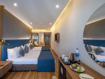 В отеле находится клиника по пересадке волос, готовьтесь с утра на завтраке любоваться толпами бойцов после операций. Завтрак в этом отеле превращен в игру, где вы будете очень очень долго ждать своей очереди. Завтраки не вкусные. Номера уже потрепаны жизнью. Если не повезёт с соседями из числа многодетных турецких семей, готовьтесь к бессонной ночи.