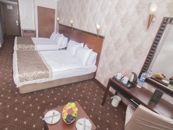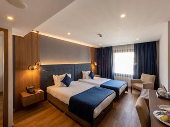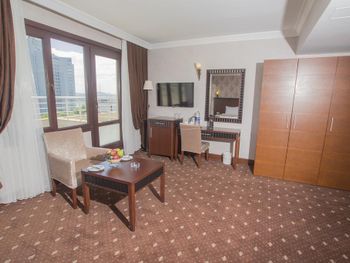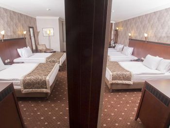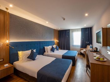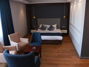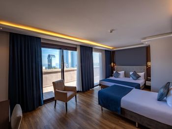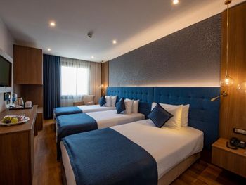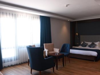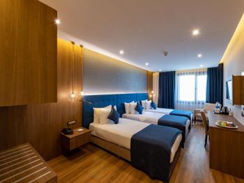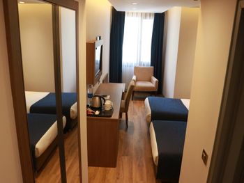 Минусы: - В отеле находится клиника трансплантации волос. Куда приезжают целыми компаниями на пересадку. Мужчин с пересажанными волосами около 15% от числа гостей. Смотреть на завтраке на их забинтованные и иногда окровавленные головы не самое приятное. - На завтраке очень шумно, прям очень! Конечно это особенность нации но нам русским было некомфортно сидеть в зале. Разговаривать между собой надо повышая голос иначе друг друга не услышишь. - В отеле русских 1% остальные - Иран, Палестина и регионы Турции. - слышимость между дверью в номер и коридором просто изумительная! Абсолютно все слышно! - В ванной нет разделения между душевой кабиной и полом поэтому когда ты моешься весь пол в воде!!! Это Мега неудобно потому что вытереть пол нечем, и растаскиваешь воду по всему номеру.! Мыла в номере нет, только шампунь и гель для душа. - Плохой вайфай, то работает то нет, всегда по разному. Одним словом как повезёт. - Утюга нет (сказали из за пожарной безопастности), гладить только за деньги. 10 лир стоило чтобы мне погладили 1 футболку! - СПА одно название. Даже не тратьте своё время чтобы хотя бы посмотреть на это убожество.