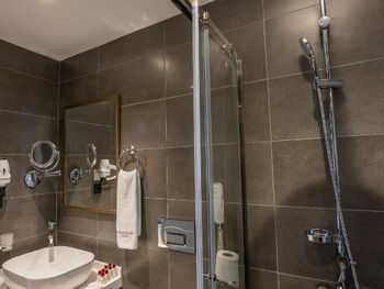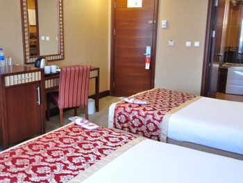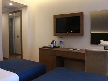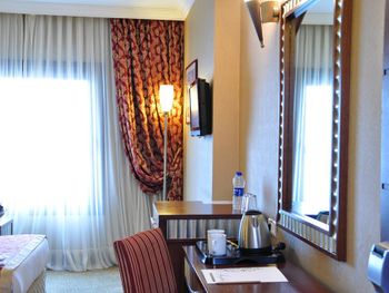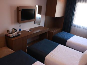 В номере не было ни обувной ложки, ни наборов для чистки зубов, ни ушных палочек. На ресепшн нам только единожды согласились дать зонт, предупредив, что это личный зонт главного менеджера. Все вышеупомянутое должно предоставляться отелем категории 4 звезды ВСЕГДА. В номере на полу холодная плитка, номера отапливаются только кондиционером. Завтраки, которые так расхваливали в отзывах, очень разочаровали. Разнообразия практически нет, каждый день одно и то же (нет каш, апельсиновый сок только за ДОПЛАТУ в 10 лир!), на горячее был один скрэмбл и резаные сосиски в соусе + вариация тушеных овощей. Свежих овощей и консервации было достаточно, но из фруктов только яблоки, выпечка тоже так себе для отеля в 4 звезды. Тот же ибис в 3 звезды предлагает шикарные завтраки.