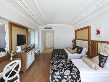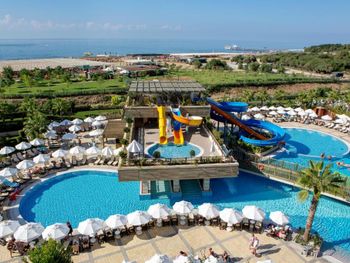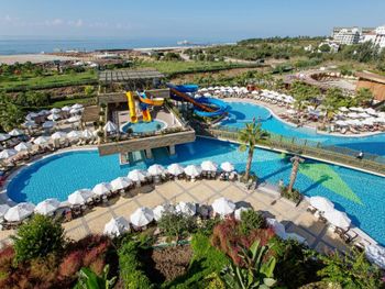 Брали номер с боковым видом на море,море было ооооочень далеко с боку,вид был на дорогу.Территория отеля очень маленькая.Еды было достаточно,но не всегда она была вкусной,часто пережареной и суховатой-это относится к рыбе,курице и индейке.Салаты часто клали большими порциями,которые не съешь. Кофе и чай в барах и ресторанах отвратительный. Кофе можно было пить только турецкий в кофейне.Некоторые бармены неквалифицированы-шомпанское бьет фонтаном из бокала и далеко не все умеют делать коктели. Вино низкого качества.Крепкий алкоголь не пробовала.Анимации практически не было.Только йога и один раз видела аквааэробику,боча ,волейбол и водное поло. Отдыхающие занимали с утра лежаки на пляже рядом с морем и уходили ,некоторые даже так и не возвращались за своими полотенцами.Администрации нужно что-то делать с этим.Все хотят лежать поближе к морю,а там все занято полотенцами.