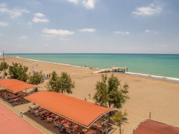 Пляж. Расположен далековато для отдыха с детьми. На самом пляже расстояние от берега до зоны с шезлонгами большое. Приходиться сидеть на берегу, что бы видеть детей в воде. Детям не комфортно ходить босиком от моря до душа, горячо и далеко. Полотенец на пляже нет! Приодеться нести из отеля. Шезлонгов вокруг основного бассейна маловато, люди их занимают впрок, иногда по пол дня не приходят, но шезлонги заняты. туалеты оставляют желать лучшего. опять же неудобны для детей. мухи и неприятный запах.