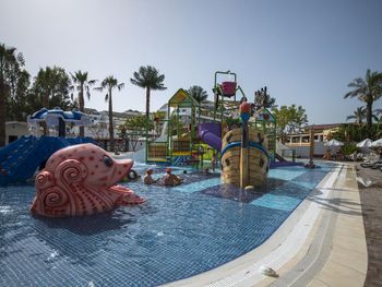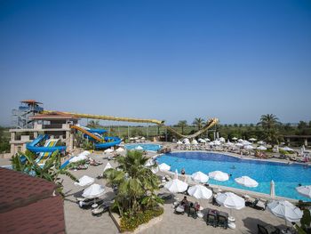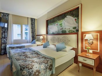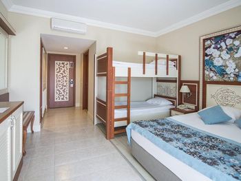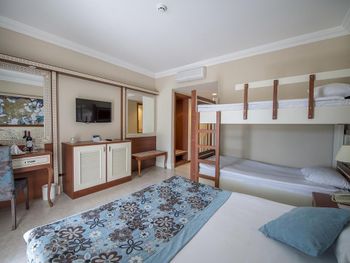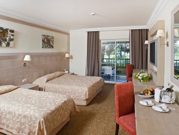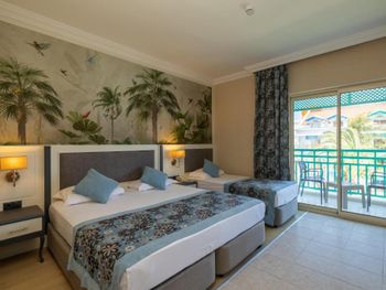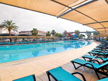 Самое ужасное в этом отеле - это отвратная кухня, вонючая столовая с грязными столами, просто толпы людей, из Еды я мог заставить съесть только бургер с картошкой фри, один раз нашёл шашлычки на шпажке из индейки и на завтраке горячие сендвичи 1 раз. Антисанитария сплошная. Народу столько, что мы просто были в шоке, сотни людей на каждом шагу. На мини диско на сцене было около 100 детей каждый вечер. В главном бассейне вода грязная, не охлаждаемая, сотни людей постоянно купаются. Все отдыхающие 90% гости из РФ.