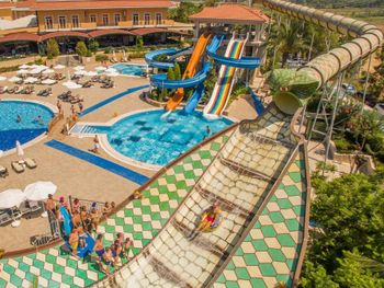 Номера с нормальным ремонтом, удобный санузел, красивая территория, нормальные горки в аквапарке. Мороженное хорошее выдавали у главного бассейна.