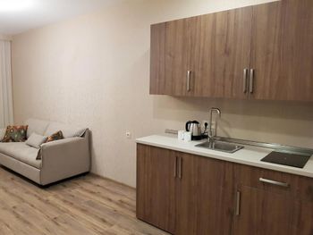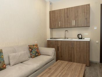 Локация очень хорошая, рядом подъемник. В номере есть посуда и все для готовки.