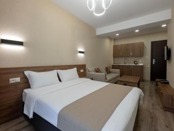 Никакого сервиса, нету ТВ каналов для иностранцев, 3 дня просили убратся в номере так и не убрали, обслуживание в ресторане очень плохое, в первый день на завтрак чай так и не принесли, а в один из дней ушли из ресторана потому что 40 минут ждали официанта, интернета практически нету. Басеин платный, дорогой и находится в другой гостинице.