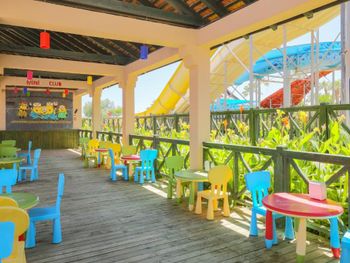При заезде обнаружился неработающий сейф. Обратилась на ресепшн. (Да, да, сейчас сделаем!) Проходит час, ничего. Подошла ещё раз. (Да, да! Через 20 минут все будет!) проходит час, ничего. Подошла к менеджеру по работе с клиентами. Та, как водится, извинилась, в качестве компенсации выписала билетик на ужин в ресторане а-ля карт, ну, и, конечно, "Да, да! Сейчас сделаем! " Что вы думаете произошло, когда вернулись с ужина?) Правильно. Ничего!) Ну, и кроме сейфа. Отель выбрали для детей из-за аквапарка. Но работает он 2 часа до обеда и 2 часа после. Так что уточняйте часы работы, когда выбираете.