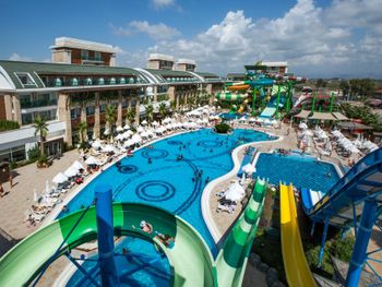 Курортный спа-отель Crystal Waterworld обрел свое название благодаря кристально чистым водам Средиземного моря. Он расположен на побережье и владеет собственным песчаным пляжем длиной 500 метров. В курортном отеле к услугам гостей 3 открытых бассейна, аквапарк с водными горками и спа-центр.