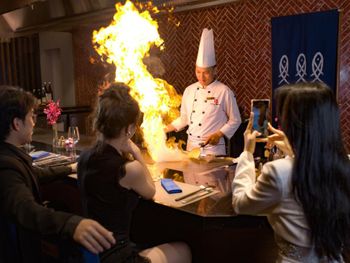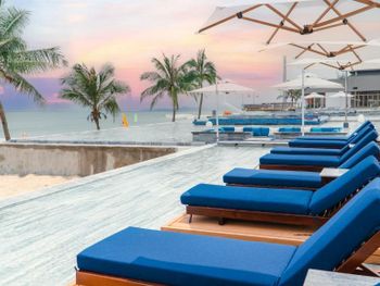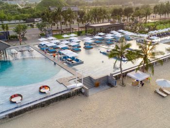 Завтрак отличный с упором в азиатские кухни. Территория красивая и интересная. Прекрасный пляжный клуб. Собственный аквапарк. Даже поющий фонтан. Единственный вопрос - далековато от центра города, поэтому лучше брать какие-то варианты all inclusive, чтобы меньше выезжать из отеля.