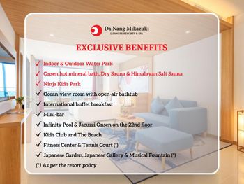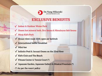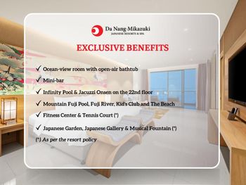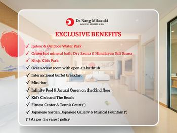 Da Nang - Mikazuki Japanese Resorts & Spa — это курортный отель в городе Дананг, в 600 м от такой достопримечательности, как Пляж Суан-Тхиеу. Среди удобств — сезонный открытый бассейн, фитнес-центр, сад и бесплатная частная парковка. Из окон курортного отеля с 5 звездами открывается вид на море. Гости могут воспользоваться частным пляжем и рестораном. Гости могут обратиться к сотрудникам круглосуточной стойки регистрации, воспользоваться трансфером от/до аэропорта или детским клубом, а также подключиться к бесплатному Wi-Fi на всей территории.