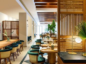 В ресторане Pangea гости могут позавтракать, любуясь видом на кристально чистые воды бухты. Ночью он превращается в международный кулинарный базар, где проводятся многочисленные тематические вечера, посвященные интернациональной кухне. Легкие закуски подают в клубе Ocean. В ресторане Greek Tavern у самой воды гостям предложат фирменные блюда местной кухни и блюда из свежих морепродуктов.