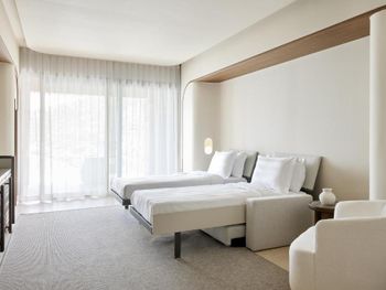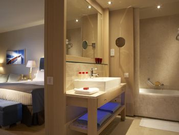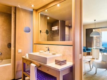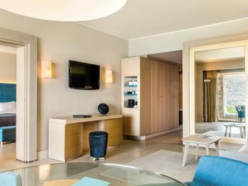 Для отеля такого уровня очень странно иметь не подогреваемый бассейн в номере с учётом такой переменчивой погоды и морем, выбирали именно из-за этого номер, но в итоге разочаровались. При выезде не предложили такси и не предупредили заранее, что вещи можно было оставить в номере, чтобы их забрали на гольф-каре. Очень медленно работает фуникулёр.