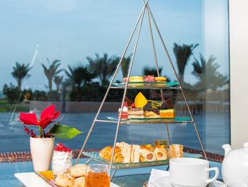 В курортном отеле Danat Jebel Dhanna работает несколько ресторанов, в том числе бистро Tides с обслуживанием в течение всего дня и ресторан изысканной итальянской кухни Zaitoun. В саду можно заказать коктейли и прохладительные напитки.
