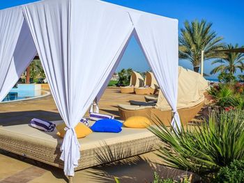 В курортном отеле Danat Jebel Dhanna можно забронировать различные виллы, номера и люксы рядом с берегом. Гостям предоставляются роскошные постельные принадлежности. Все виллы, номера и люксы с гостиным уголком оснащены телевизором со спутниковыми каналами. В некоторых из них есть балкон с видом на лагуну и полностью оборудованная мини-кухня.