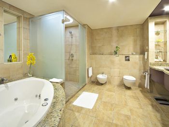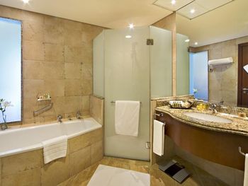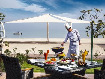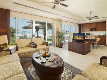 В распоряжении гостей этого 5-звездочного курортного отеля частный пляж с белым песком протяженностью 800 метров. В числе удобств просторный открытый бассейн с баром у кромки бассейна. Из номеров в элегантном стиле открывается вид на Персидский залив.