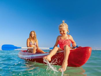 Для отдыхающих - море очень мелкое, по колено. Поплавать вам не удастся. Но вода очень чистая, дно песчаное. Для семей с маленькими детьми это отличный вариант.