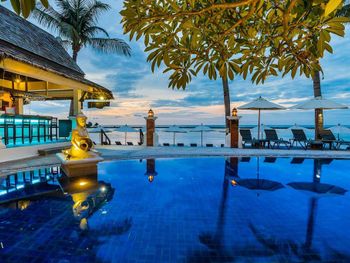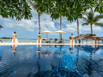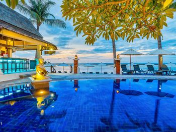 Старый, замученный жизнью отель. Вроде и находится в самом центре Чавенга, но с одной стороны у него пустырь (куда и выходят все окна), с другой стройка. Мы жили в "вилле", это было ужасно. Кровать, сваренная из металлических брусьев, шаталась и скрипела, летний душ - это просто пристройка с пластиковым потолком (который никогда не мыли и вид у него соответствующий, по самому душу толпами бегают муравьи, падают на голову лягушки. Окна в вилле с огромными дырами, в номерах куча насекомых и забредают в гости ящерки (хорошо, что только они). Уборка ужасная, состоит из смены полотенец и обработки номера от насекомых. Вроде ничего необычного для Тайланда, но не за более чем 1000 $ за неделю. Море отсутствует. Мелко. Мертвый коралловый риф создает своеобразную бухту, в которой в лучшем случае глубина по пояс. На дне растут водоросли, которые в ближайшем будущем займут все пространство. Пляжа тоже нет практически. У бассейна (тоже безумно мелкого) есть 8 лежаков, на пляже тоже не очень много. Их начинают убирать уже в районе 17.00 т.к. выставляют столы на ужин. Это очень не удобно, для любителей поваляться на пляже до последнего. Персонал дежурно улыбается, но кроме одной официантки и, на удивление, бичбоя, от остальных ничего добиться невозможно. Например, из 4х заказанных ранних завтраков, мы получили только 1.