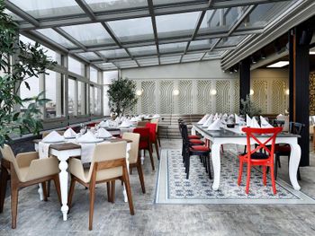 В ресторане с террасой на крыше, откуда открывается панорамный вид на Стамбул, подают традиционные фирменные блюда турецкой кухни, а также блюда интернациональной кухни.