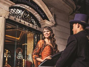 Месторасположение, интерьер , интересная история отеля , тематика .