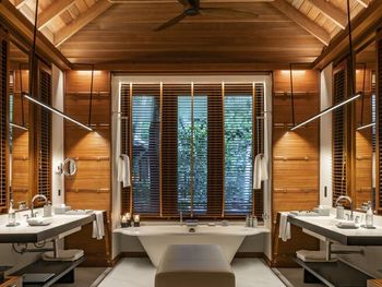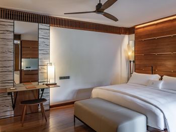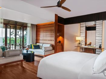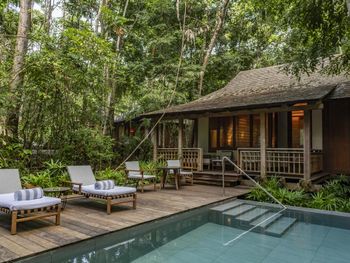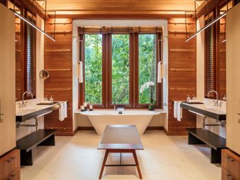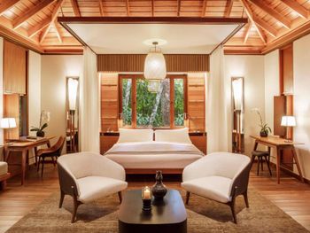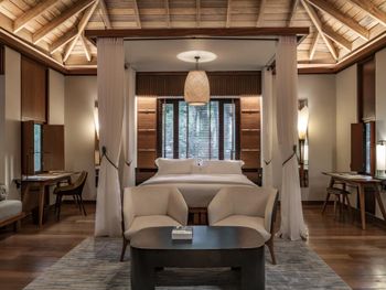 Из номеров и вилл курортного отеля Datai Langkawi открывается вид на тропический пейзаж. В числе удобств также гостиная зона с собственным балконом. Кроме того, в номерах и на виллах имеется ванная комната с гардеробной и ванной.