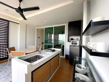 - Огромный балкон, который одновременно используется как кухня. Сначала мне показалось, что это странное решение, но потом поняла, что это удобно: кушать с видом на море очень даже приятно.