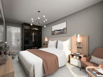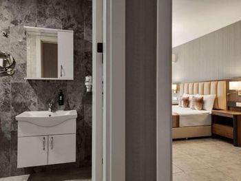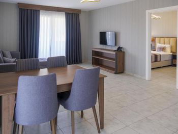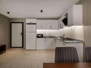В данном отеле понравилось абсолютно все. Удачное расположение в Конаклы. До активной зоны поселка надо пешком пройтись минут 10-15. Понравилось, что отель расположен в самом торговом центре, кроме завтраков в отеле, которые входят в стоимость, в ТЦ есть бургер кинг, доминос пицца и еще одна кафешка. Там же магазин U.S. Polo, Defacto, супермаркет Мигрос, аптека. Есть бесплатная стоянка и зарядка для электромобилей. Номера большие, чистые. Есть все необходимое: кухня с большим холодильником со всеми кухонными принадлежностями для готовки еды, гладильная доска, утюг. Завтрак - шведский стол.