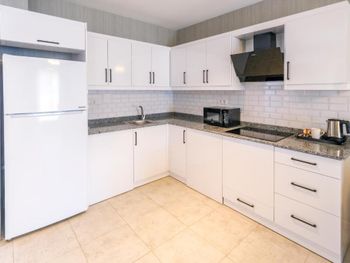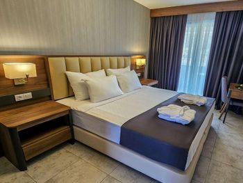 Номера новые и уютные, постельное белье свежее и чистое, завтраки хорошие за эту стоимость. В номере имеется кухня и посуда, балкон. Единственное надо учесть, что гостиница находится не в самой Аланье, а в Конаклы - 20 минутах от Аланьи. Мы были на машине, поэтому проблем это не доставило. На территории есть Мигрос, магазины одежды, аптека, гостиница находится внутри торгового центра Alanya mall. Галечный пляж в 200 метрах, надо перейти дорогу и пройти на территорию другого отеля, с которым у них есть договоренность. Девушка Дария очень милая, помогла нам с нашим бронированием. Проживанием очень довольны и не хотели уезжать.