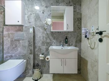 Отличные просторные апартаменты с полноценной кухней, удобными кроватями, прекрасным wifi. Располагаются над торговым центром. Большая парковка для автомобилей. На первом этаже центра есть Migros, где мы покупали продукты. Уборка в номерах - ежедневная Завтрак был почти одинаковый каждый день, но нас устраивал такой набор - овощи, маслины, сыр, колбаса, сосиски, яйца в разном виде ежедневно. Мы голодными не оставались