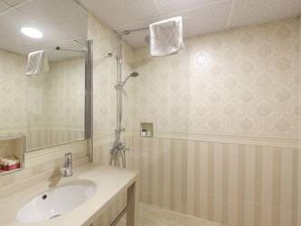 На удивление негостепримный, некомфортный отель, при входе в холл присутствует странный запах как в аптеке, аналогичный запах и в номере. Номер небольшой, неуютный, ванна тоже маленькая, половина полотенец белого, половина желтоватого цвета, что говорит либо об их застиранности, либо недостаточно качественной стирке. Отсутствовал элементарный набор необходимого в номере, например, был в наличии шампунь, мыло, крем для тела, геля для душа, кондиционера не было. Ни халата, ни тапочек в номере нет. Упакованный по моей просьбе ланч бокс вызвал просто смех: булка с тонким куском отвратительной ветчины, всё. Персонал абсолютно не радушен и не внимателен. На предварительные запросы о местоаоложении и т.п. деталях отвечают только через сутки. Словом, я бы не рекомендовала этот отель, не знаю за что ему присвоено 4 звезды, может, только за безвкусную лепнину.
