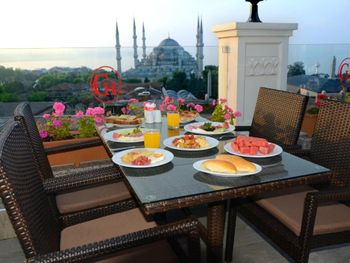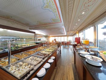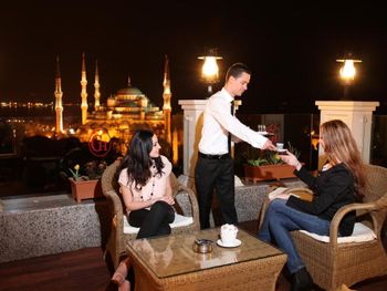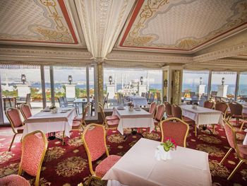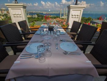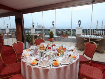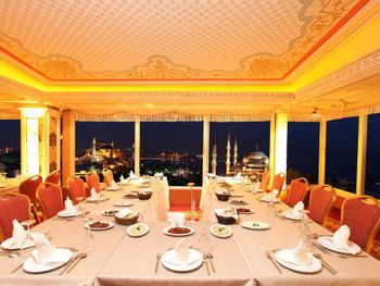 По утрам на террасе с панорамным видом сервируют завтрак «шведский стол». Вечером в ресторане царит романтическая обстановка. Гости могут полюбоваться видом на мерцающий центр Стамбула с высоты птичьего полета и заказать различные блюда турецкой и интернациональной кухни.