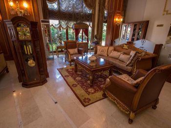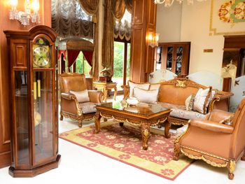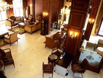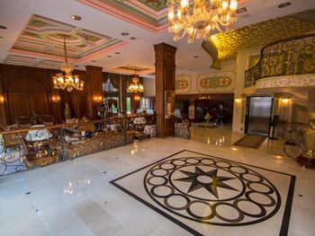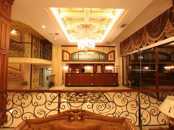 Очень не улыбчивый грубый персонал. Особенно возрастной мужчина на ресепшене. Он не пытался нас понять. Поселили в подвальное помещение. В коридоре трубы по потолку как в подвале.. Также по коридору пылесосы химия для уборки была разбросана. На просьбу о смене номера несколько раз "посылали". Потом отвели в грязный номер, в котором стояли пустые банки из под пива, номер прокуренный - как будто курили не открывая окна вся эта лепнина дешевая из "золота" смотрится дешево и безвкусно. Не приятно находится в номерах.