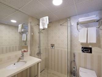 Фотографии не соответствуют реальной обстановке. Брали улучшенный вариант с видом на Босфор. Комната маленькая, Босфор далеко... Отель позиционирует себя, как 4 звезды, а в реальности 3 с натяжкой. На балконе ящик для цветов с окурками, дверь балконная и дверь в туалет не закрывалась. Туалетная комната совсем маленькая, в душе брызги на весь пол. Гигиенические принадлежности - шампунь и мыло, геля для душа и кондиционера для волос нет. Халаты по запросу.