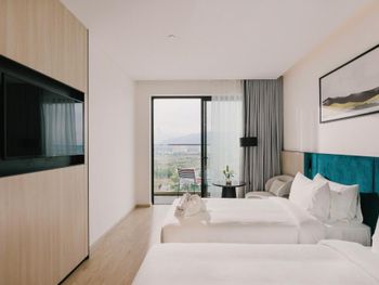 Иногда было шумно из-за караоке на улице. Лучше брать номера с видом на горы. Вода в бассейне была прохладной, не смогли плавать. Лежаков очень мало.