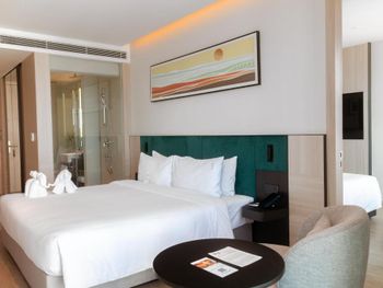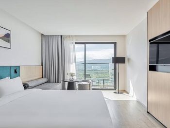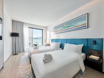Расположения отеля отличное, третья линия, не шумное место. В шаговой доступности весь движ и отличный общепит. До пляжа минут 7-10. Завтраки неплохие, без вау, стандарт вьетнамской пятерки, но не всегда есть свободные столики, приходится ждать. Номера отличные, все стильно современно, чисто при заселении, уборка в дальнейшем тоже не подкачала. Вид из номера тоже неплох. Есть балкончик с 2 стульями и столиком. Суперская парковка для байка, нормальный подземный паркинг с охраной, не как у некоторых отелей вдоль дороги. Очень красивые лобби!